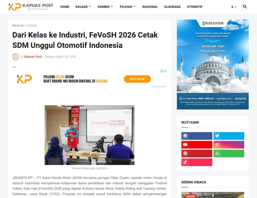 Dari Kelas ke Industri, FeVoSH 2026 Cetak SDM Unggul Otomotif Indonesia by Muhammad Arif 10 Maret 2026 in Silahkan kunjungi https://www.kapuaspost.web.id/2026/03/dari-kelas-ke-industri-fevosh-2026.html. Tags: astra Astra Motor kalbar Astra Motor Pontianak astramotor honda kalbar pontianak sepeda motor You Might Like Regional Public Launching New ADV160 The SUV Pride Grand Launching New PCX 160 Truly Exceptional! Tetap hati-hati ya bro sist berkendara saat hujan.