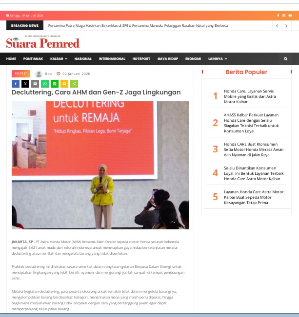Decluttering, Cara AHM dan Gen-Z Jaga Lingkungan by masmul 2 Januari 2026 in Silahkan kunjungi https://www.suarapemredkalbar.com/read/potret/02012026/decluttering-cara-ahm-dan-gen-z-jaga-lingkungan. You Might Like Regional Public Launching New ADV160 The SUV Pride Grand Launching New PCX 160 Truly Exceptional! Tetap hati-hati ya bro sist berkendara saat hujan.