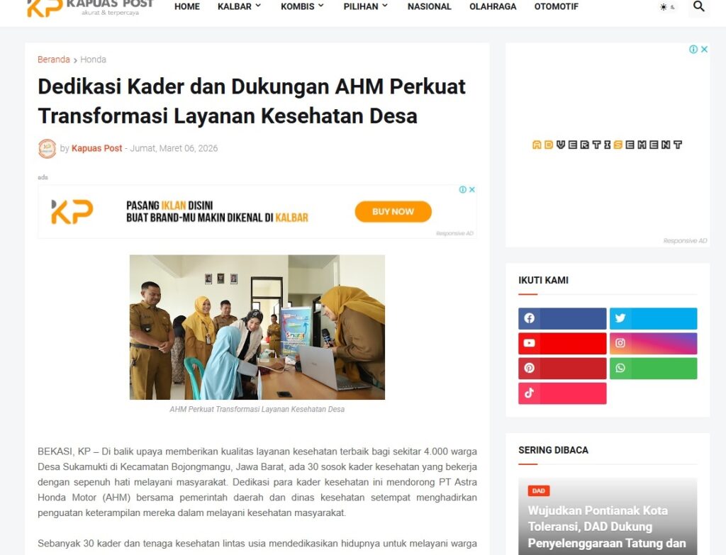 Dedikasi Kader dan Dukungan AHM Perkuat Transformasi Layanan Kesehatan Desa by Muhammad Arif 6 Maret 2026 in Silahkan kunjungi https://www.kapuaspost.web.id/2026/03/dedikasi-kader-dan-dukungan-ahm-perkuat.html. Tags: astra Astra Motor kalbar Astra Motor Pontianak astramotor honda kalbar pontianak sepeda motor You Might Like Regional Public Launching New ADV160 The SUV Pride Grand Launching New PCX 160 Truly Exceptional! Tetap hati-hati ya bro sist berkendara saat hujan.