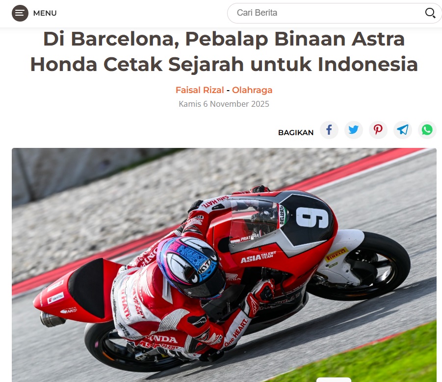 Di Barcelona, Pebalap Binaan Astra Honda Cetak Sejarah untuk Indonesia by Dodi Dodi 6 November 2025 in Silahkan kunjungi https://harianberkat.com/2025/11/06/di-barcelona-pebalap-binaan-astra-honda-cetak-sejarah-untuk-indonesia/. You Might Like Regional Public Launching New ADV160 The SUV Pride Grand Launching New PCX 160 Truly Exceptional! Tetap hati-hati ya bro sist berkendara saat hujan.