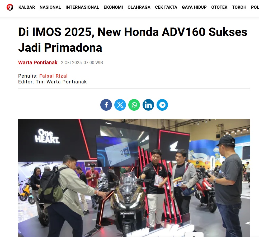 Di IMOS 2025, New Honda ADV160 Sukses Jadi Primadona by Faisal Rizal 2 Oktober 2025 in Silahkan kunjungi https://wartapontianak.pikiran-rakyat.com/gaya-hidup/pr-1179688761/di-imos-2025-new-honda-adv160-sukses-jadi-primadona. You Might Like Regional Public Launching New ADV160 The SUV Pride Grand Launching New PCX 160 Truly Exceptional! Tetap hati-hati ya bro sist berkendara saat hujan.