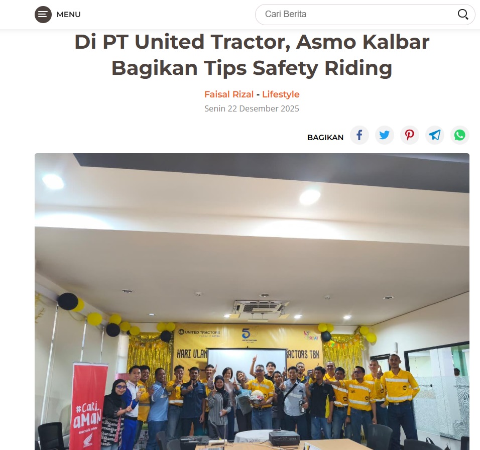 Di PT United Tractor, Asmo Kalbar Bagikan Tips Safety Riding by Dodi Dodi 22 Desember 2025 in Silahkan kunjungi https://harianberkat.com/2025/12/22/di-pt-united-tractor-asmo-kalbar-bagikan-tips-safety-riding/. You Might Like Regional Public Launching New ADV160 The SUV Pride Grand Launching New PCX 160 Truly Exceptional! Tetap hati-hati ya bro sist berkendara saat hujan.