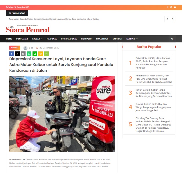 Diapresiasi Konsumen Loyal, Layanan Honda Care Astra Motor Kalbar untuk Servis Kunjung saat Kendala Kendaraan di Jalan by masmul 30 Desember 2025 in Silahkan kunjungi https://www.suarapemredkalbar.com/read/potret/30122025/diapresiasi-konsumen-loyal-layanan-honda-care-astra-motor-kalbar-untuk-servis-kunjung-saat-kendala-kendaraan-di-jalan. You Might Like Regional Public Launching New ADV160 The SUV Pride Grand Launching New PCX 160 Truly Exceptional! Tetap hati-hati ya bro sist berkendara saat hujan.