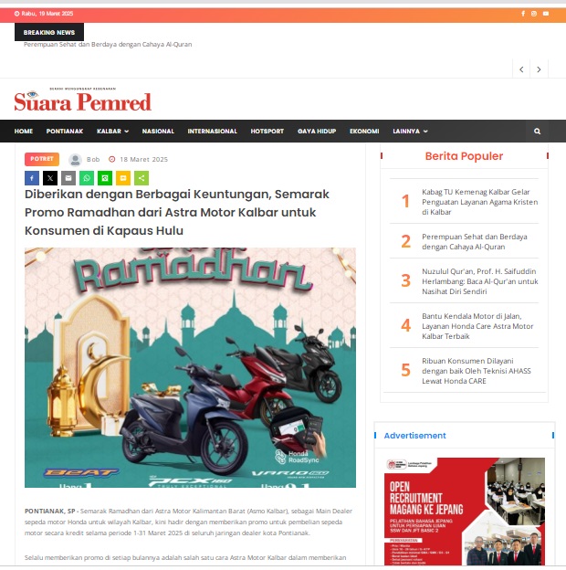 Diberikan dengan Berbagai Keuntungan, Semarak Promo Ramadhan dari Astra Motor Kalbar untuk Konsumen di Kapaus Hulu by masmul 18 Maret 2025 in Silahkan kunjungi https://www.suarapemredkalbar.com/read/potret/18032025/diberikan-dengan-berbagai-keuntungan-semarak-promo-ramadhan-dari-astra-motor-kalbaruntuk-konsumen-di-kapaus-hulu. You Might Like Regional Public Launching New ADV160 The SUV Pride Grand Launching New PCX 160 Truly Exceptional! Tetap hati-hati ya bro sist berkendara saat hujan.
