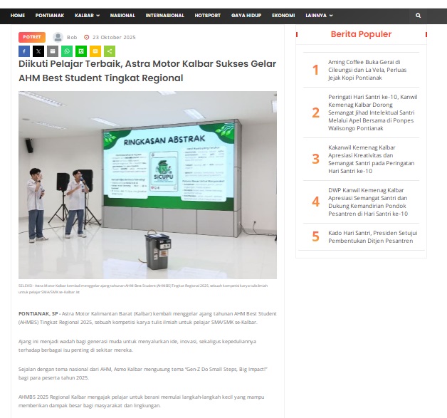 Diikuti Pelajar Terbaik, Astra Motor Kalbar Sukses Gelar AHM Best Student Tingkat Regional by masmul 23 Oktober 2025 in Silahkan kunjungi https://www.suarapemredkalbar.com/read/potret/23102025/diikuti-pelajar-terbaik-astra-motor-kalbar-sukses-gelar-ahm-best-student-tingkat-regional. You Might Like Regional Public Launching New ADV160 The SUV Pride Grand Launching New PCX 160 Truly Exceptional! Tetap hati-hati ya bro sist berkendara saat hujan.