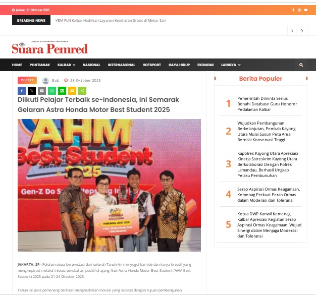 Diikuti Pelajar Terbaik se-Indonesia, Ini Semarak Gelaran Astra Honda Motor Best Student 2025 by masmul 28 Oktober 2025 in Silahkan kunjungi https://www.suarapemredkalbar.com/read/potret/28102025/diikuti-pelajar-terbaik-se-indonesia-ini-semarak-gelaran-astra-honda-motor-best-student-2025. You Might Like Regional Public Launching New ADV160 The SUV Pride Grand Launching New PCX 160 Truly Exceptional! Tetap hati-hati ya bro sist berkendara saat hujan.