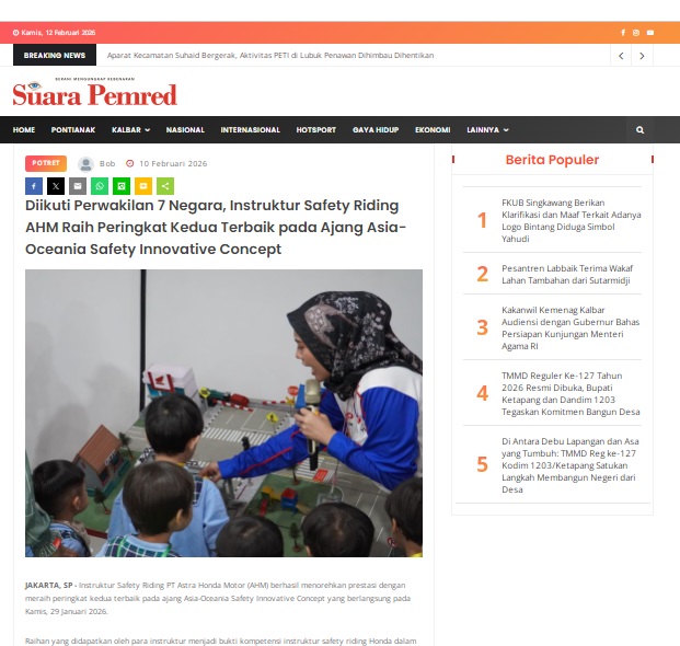 Diikuti Perwakilan 7 Negara, Instruktur Safety Riding AHM Raih Peringkat Kedua Terbaik pada Ajang Asia-Oceania Safety Innovative Concept by masmul 10 Februari 2026 in Silahkan kunjungi https://www.suarapemredkalbar.com/read/potret/10022026/diikuti-perwakilan-7-negara-instruktur-safety-riding-ahm-raih-peringkat-kedua-terbaik-pada-ajang-asia-oceania-safety-innovative-concept. You Might Like Regional Public Launching New ADV160 The SUV Pride Grand Launching New PCX 160 Truly Exceptional! Tetap hati-hati ya bro sist berkendara saat hujan.