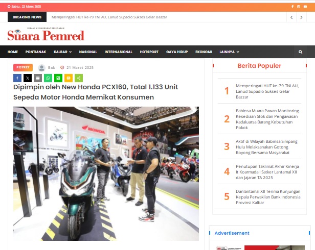 Dipimpin oleh New Honda PCX160, Total 1.133 Unit Sepeda Motor Honda Memikat Konsumen by masmul 21 Maret 2025 in Silahkan kunjungi https://www.suarapemredkalbar.com/read/potret/21032025/dipimpin-oleh-new-honda-pcx160-total-1133-unit-sepeda-motor-honda-memikat-konsumen. You Might Like Regional Public Launching New ADV160 The SUV Pride Grand Launching New PCX 160 Truly Exceptional! Tetap hati-hati ya bro sist berkendara saat hujan.