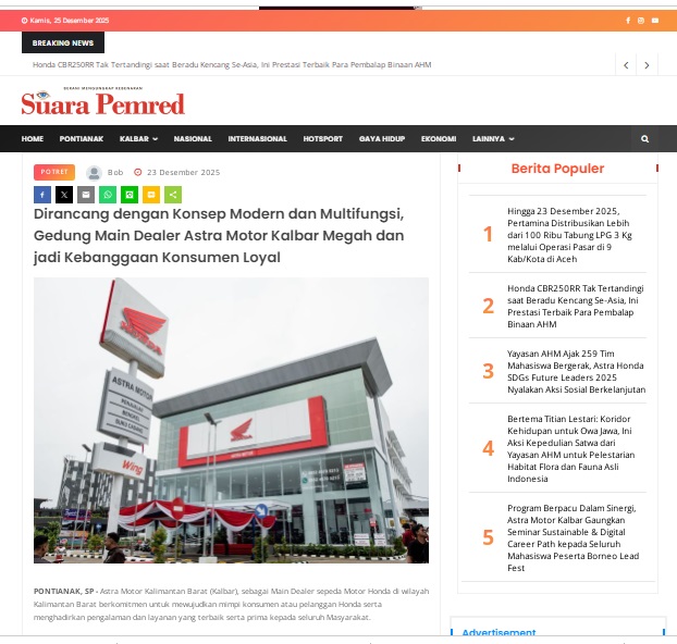 Dirancang dengan Konsep Modern dan Multifungsi, Gedung Main Dealer Astra Motor Kalbar Megah dan jadi Kebanggaan Konsumen Loyal by masmul 23 Desember 2025 in Silahkan kunjungi https://www.suarapemredkalbar.com/read/potret/23122025/dirancang-dengan-konsep-modern-dan-multifungsi-gedung-main-dealer-astra-motor-kalbar-megah-dan-jadi-kebanggaan-konsumen-loyal. You Might Like Regional Public Launching New ADV160 The SUV Pride Grand Launching New PCX 160 Truly Exceptional! Tetap hati-hati ya bro sist berkendara saat hujan.