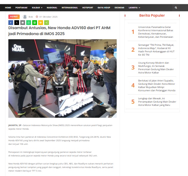 Disambut Antusias, New Honda ADV160 dari PT AHM jadi Primadona di IMOS 2025 by masmul 1 Oktober 2025 in Silahkan kunjungi https://www.suarapemredkalbar.com/read/potret/01102025/disambut-antusias-new-honda-adv160-dari-pt-ahm-jadi-primadona-di-imos-2025. You Might Like Regional Public Launching New ADV160 The SUV Pride Grand Launching New PCX 160 Truly Exceptional! Tetap hati-hati ya bro sist berkendara saat hujan.