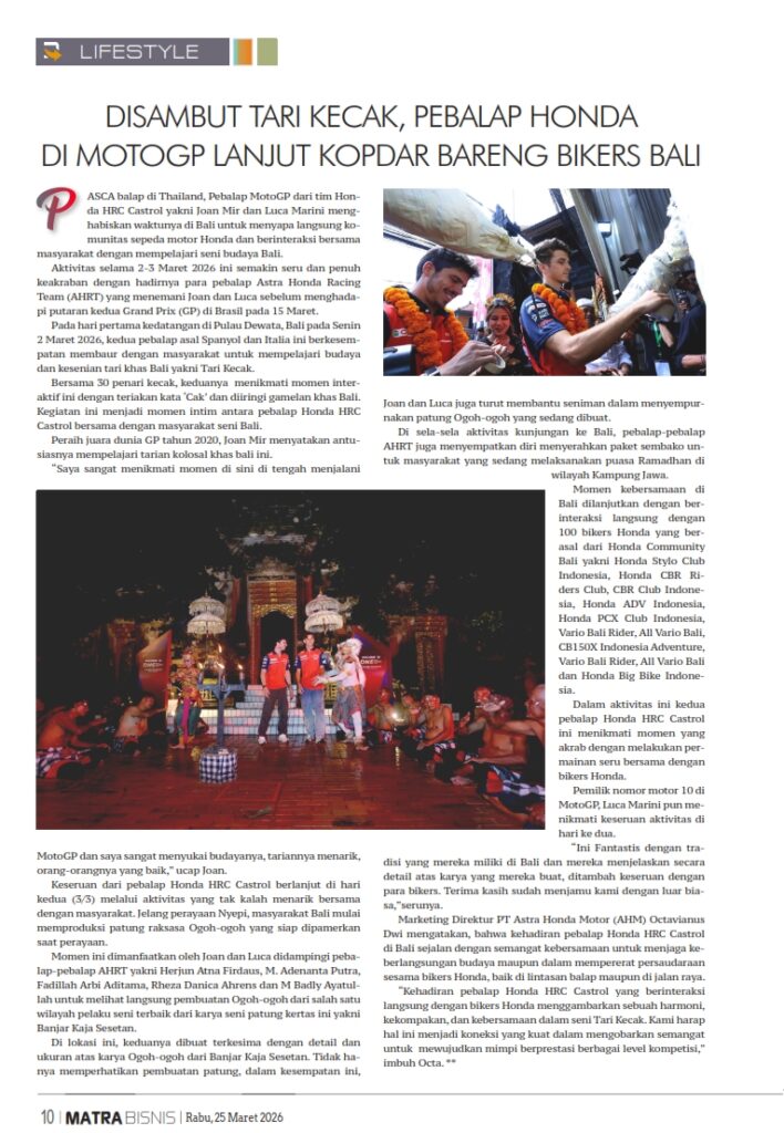 DISAMBUT TARI KECAK, PEBALAP HONDA DI MOTOGP LANJUT KOPDAR BARENG BIKERS BALI by Sri Yuliantiningsih 25 Maret 2026 in Silahkan buka . You Might Like Regional Public Launching New ADV160 The SUV Pride Grand Launching New PCX 160 Truly Exceptional! Tetap hati-hati ya bro sist berkendara saat hujan.
