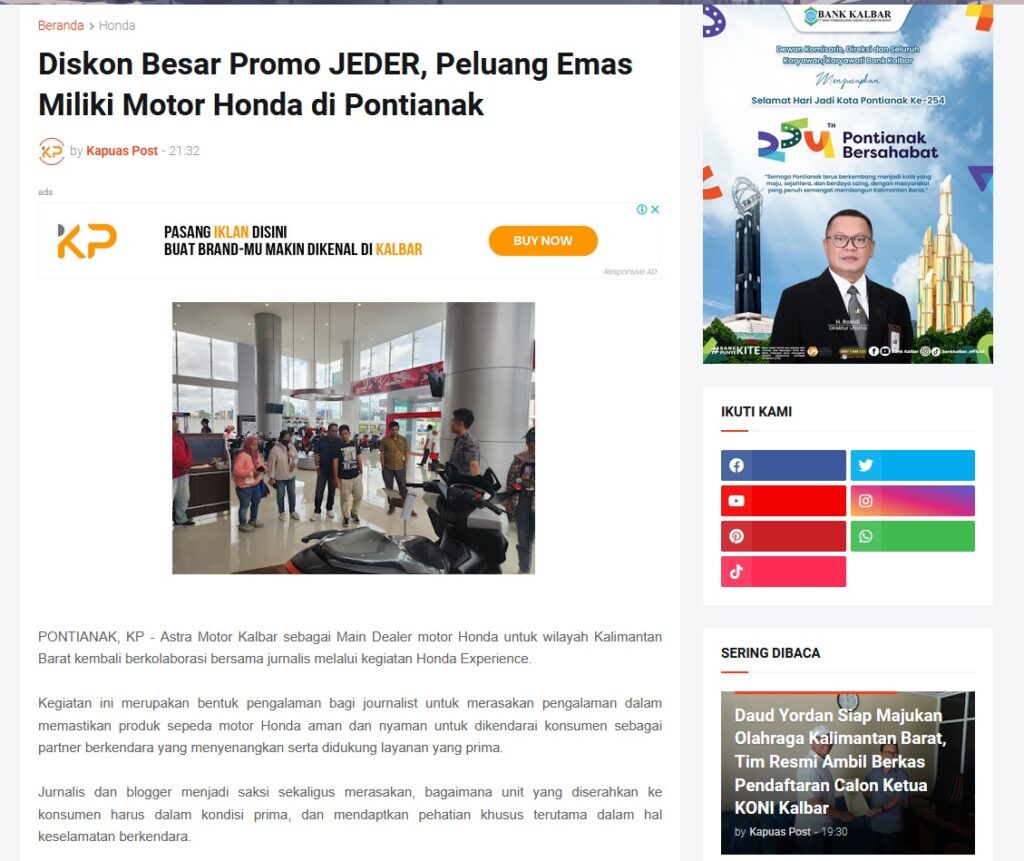 Diskon Besar Promo JEDER, Peluang Emas Miliki Motor Honda di Pontianak by Muhammad Arif 17 November 2025 in Silahkan kunjungi https://www.kapuaspost.web.id/2025/11/diskon-besar-promo-jeder-peluang-emas.html. Tags: astra Astra Motor kalbar Astra Motor Pontianak astramotor honda kalbar pontianak sepeda motor You Might Like Regional Public Launching New ADV160 The SUV Pride Grand Launching New PCX 160 Truly Exceptional! Tetap hati-hati ya bro sist berkendara saat hujan.