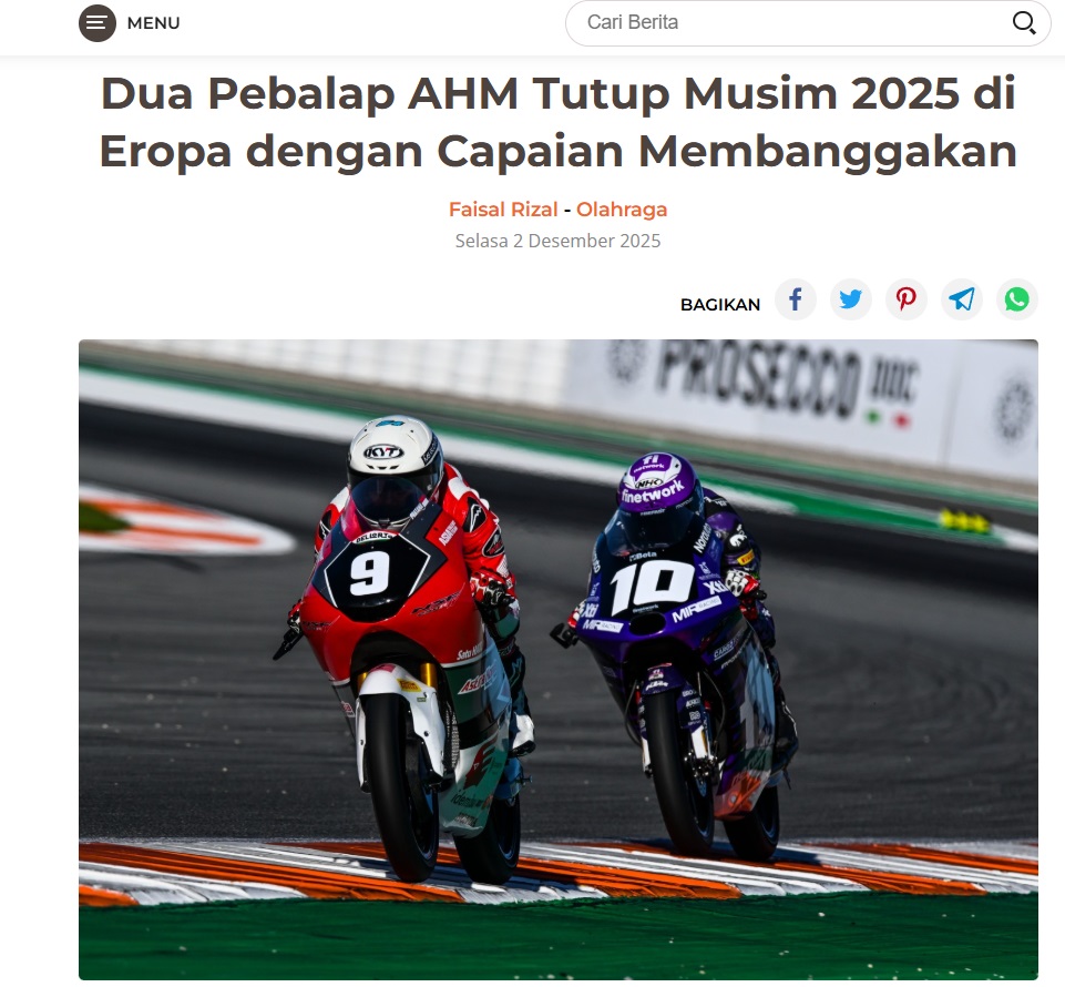 Dua Pebalap AHM Tutup Musim 2025 di Eropa dengan Capaian Membanggakan by Dodi Dodi 2 Desember 2025 in Silahkan kunjungi https://harianberkat.com/2025/12/02/dua-pebalap-ahm-tutup-musim-2025-di-eropa-dengan-capaian-membanggakan/. You Might Like Regional Public Launching New ADV160 The SUV Pride Grand Launching New PCX 160 Truly Exceptional! Tetap hati-hati ya bro sist berkendara saat hujan.