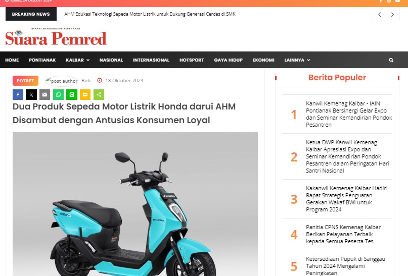 Dua Produk Sepeda Motor Listrik Honda darui AHM Disambut dengan Antusias Konsumen Loyal by masmul 18 Oktober 2024 in Silahkan kunjungi https://www.suarapemredkalbar.com/read/potret/18102024/dua-produk-sepeda-motor-listrik-honda-darui-ahm-disambut-dengan-antusias-konsumen-loyal. You Might Like Regional Public Launching New ADV160 The SUV Pride Grand Launching New PCX 160 Truly Exceptional! Tetap hati-hati ya bro sist berkendara saat hujan.