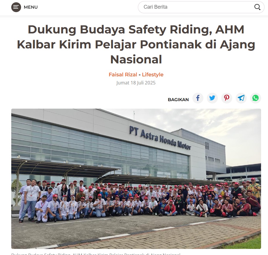 Dukung Budaya Safety Riding, AHM Kalbar Kirim Pelajar Pontianak di Ajang Nasional by Dodi Dodi 18 Juli 2025 in Silahkan kunjungi https://harianberkat.com/2025/07/18/dukung-budaya-safety-riding-ahm-kalbar-kirim-pelajar-pontianak-di-ajang-nasional/. You Might Like Regional Public Launching New ADV160 The SUV Pride Grand Launching New PCX 160 Truly Exceptional! Tetap hati-hati ya bro sist berkendara saat hujan.