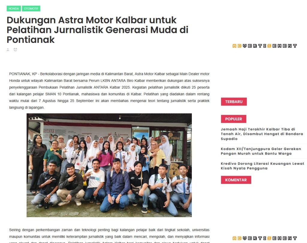 Dukungan Astra Motor Kalbar untuk Pelatihan Jurnalistik Generasi Muda di Pontianak