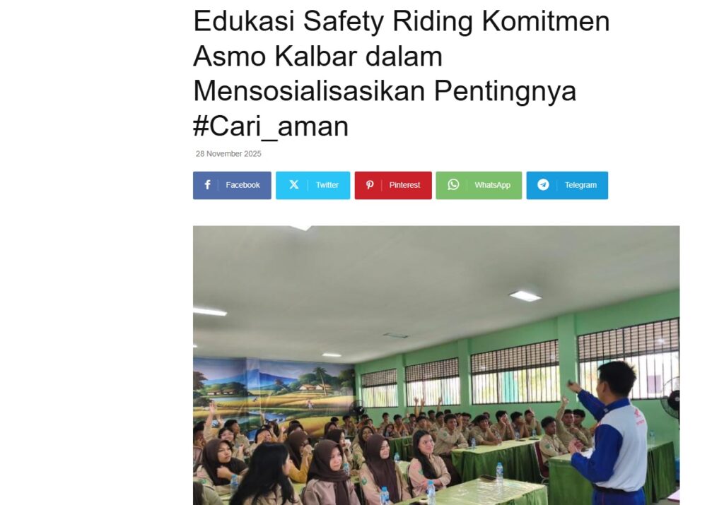 Edukasi Safety Riding Komitmen Asmo Kalbar dalam Mensosialisasikan Pentingnya #Cari_aman by Nova Sari 28 November 2025 in Silahkan kunjungi https://equator.co.id/edukasi-safety-riding-komitmen-asmo-kalbar-dalam-mensosialisasikan-pentingnya-cari_aman/. You Might Like Regional Public Launching New ADV160 The SUV Pride Grand Launching New PCX 160 Truly Exceptional! Tetap hati-hati ya bro sist berkendara saat hujan.