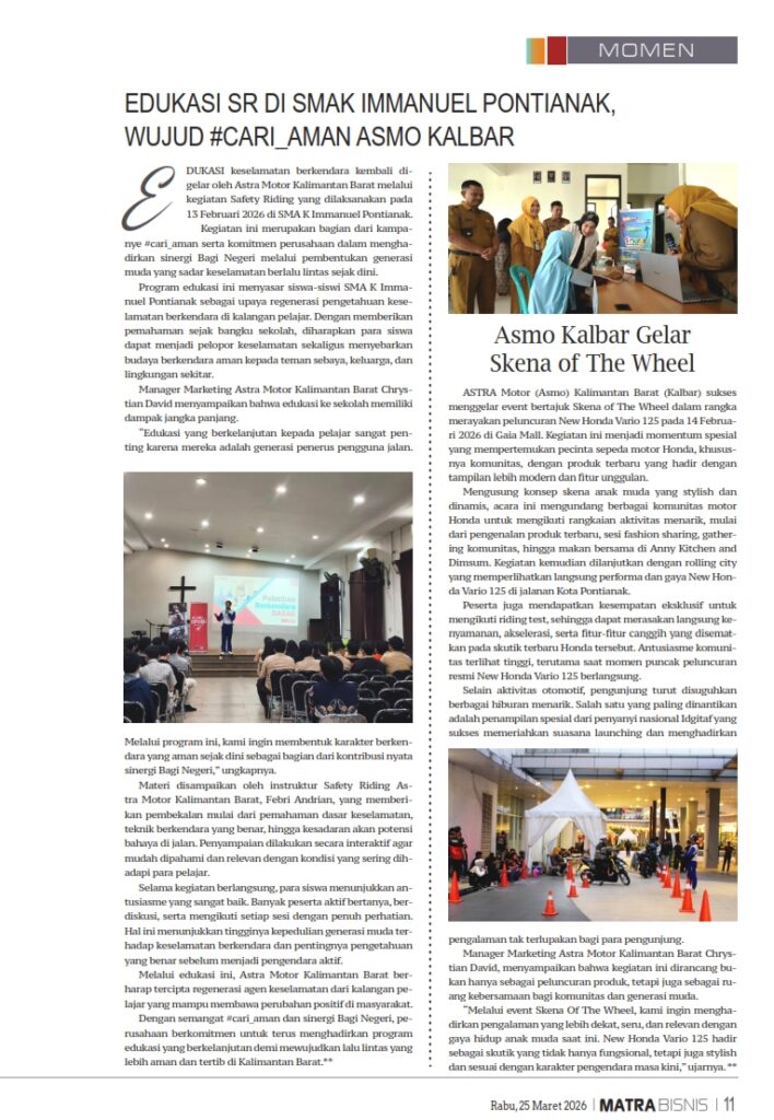 EDUKASI SR DI SMAK IMMANUEL PONTIANAK, WUJUD #CARI_AMAN ASMO KALBAR by Sri Yuliantiningsih 25 Maret 2026 in Silahkan buka . You Might Like Regional Public Launching New ADV160 The SUV Pride Grand Launching New PCX 160 Truly Exceptional! Tetap hati-hati ya bro sist berkendara saat hujan.