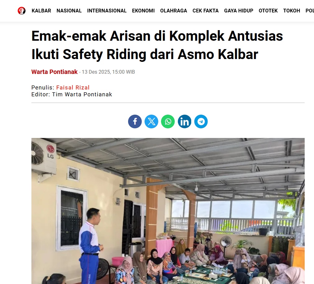 Emak-emak Arisan di Komplek Antusias Ikuti Safety Riding dari Asmo Kalbar by Faisal Rizal 13 Desember 2025 in Silahkan kunjungi https://wartapontianak.pikiran-rakyat.com/gaya-hidup/pr-1179859193/emak-emak-arisan-di-komplek-antusias-ikuti-safety-riding-dari-asmo-kalbar. You Might Like Regional Public Launching New ADV160 The SUV Pride Grand Launching New PCX 160 Truly Exceptional! Tetap hati-hati ya bro sist berkendara saat hujan.