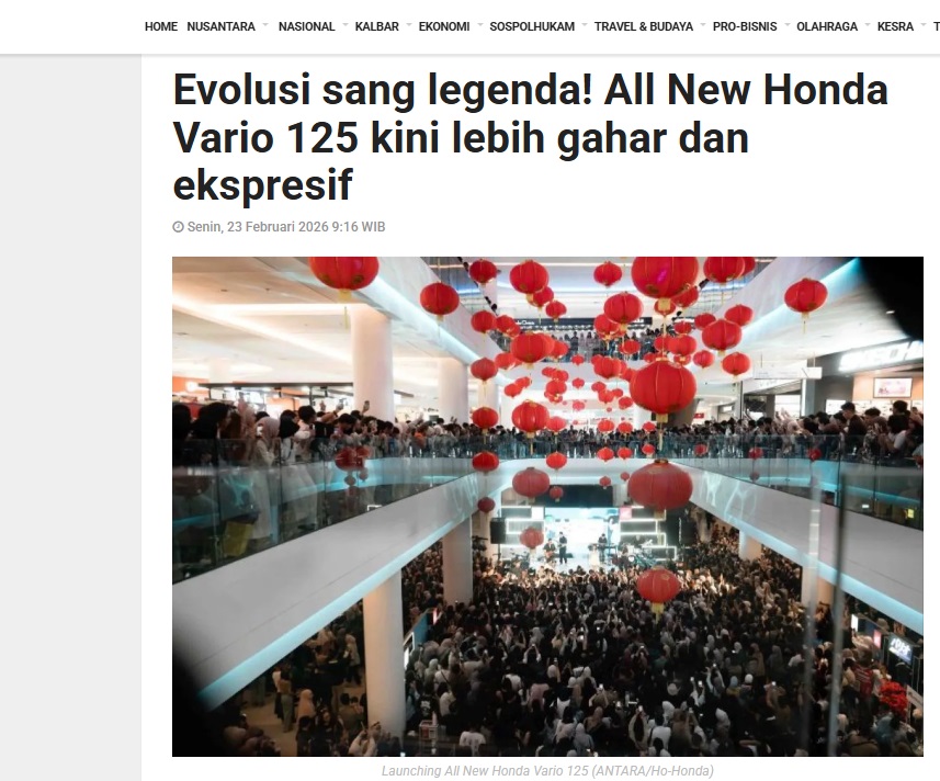 Evolusi sang legenda! All New Honda Vario 125 kini lebih gahar dan ekspresif by Dedi 23 Februari 2026 in Silahkan kunjungi https://kalbar.antaranews.com/berita/690938/evolusi-sang-legenda-all-new-honda-vario-125-kini-lebih-gahar-dan-ekspresif. You Might Like Regional Public Launching New ADV160 The SUV Pride Grand Launching New PCX 160 Truly Exceptional! Tetap hati-hati ya bro sist berkendara saat hujan.