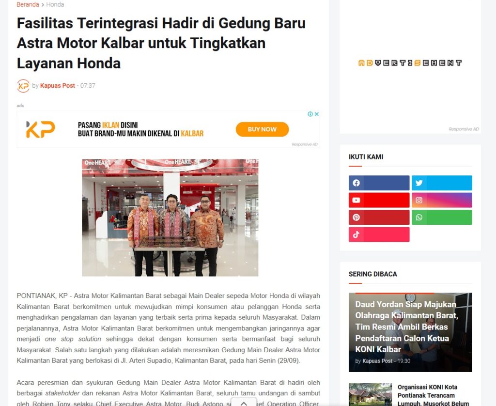 Fasilitas Terintegrasi Hadir di Gedung Baru Astra Motor Kalbar untuk Tingkatkan Layanan Honda by Muhammad Arif 4 Desember 2025 in Silahkan kunjungi https://www.kapuaspost.web.id/2025/12/fasilitas-terintegrasi-hadir-di-gedung.html. Tags: astra Astra Motor kalbar Astra Motor Pontianak astramotor honda kalbar pontianak sepeda motor You Might Like Regional Public Launching New ADV160 The SUV Pride Grand Launching New PCX 160 Truly Exceptional! Tetap hati-hati ya bro sist berkendara saat hujan.