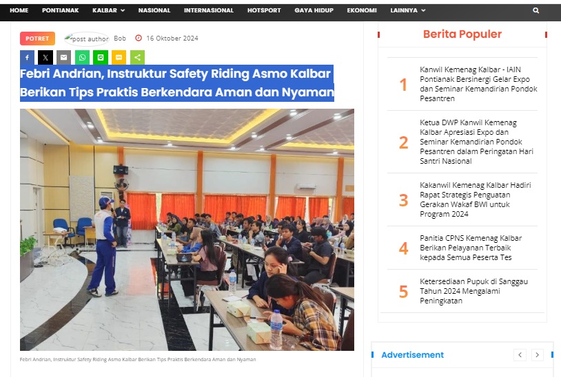 Febri Andrian, Instruktur Safety Riding Asmo Kalbar Berikan Tips Praktis Berkendara Aman dan Nyaman by masmul 16 Oktober 2024 in Silahkan kunjungi https://www.suarapemredkalbar.com/read/potret/16102024/febri-andrian-instruktur-safety-riding-asmo-kalbar-berikan-tips-praktis-berkendara-aman-dan-nyaman. You Might Like Regional Public Launching New ADV160 The SUV Pride Grand Launching New PCX 160 Truly Exceptional! Tetap hati-hati ya bro sist berkendara saat hujan.