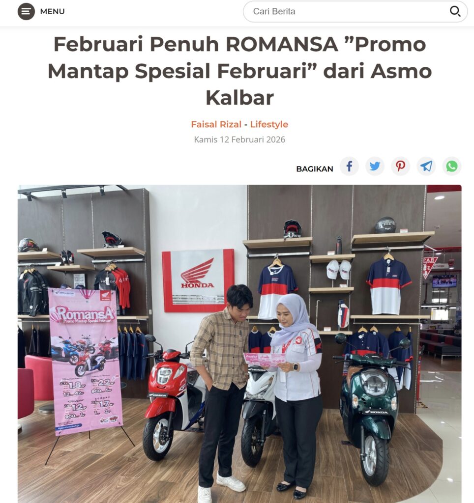 Februari Penuh ROMANSA ”Promo Mantap Spesial Februari” dari Asmo Kalba by Dodi Dodi 12 Februari 2026 in Silahkan kunjungi https://harianberkat.com/2026/02/12/februari-penuh-romansa-promo-mantap-spesial-februari-dari-asmo-kalbar/. You Might Like Regional Public Launching New ADV160 The SUV Pride Grand Launching New PCX 160 Truly Exceptional! Tetap hati-hati ya bro sist berkendara saat hujan.