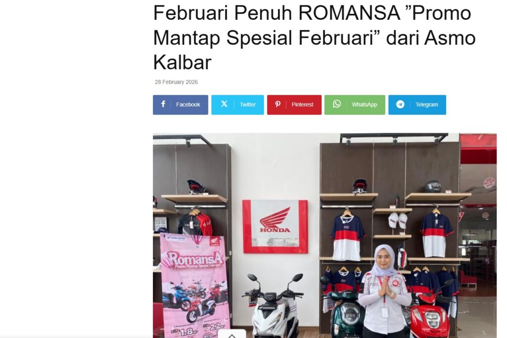 Februari Penuh ROMANSA ”Promo Mantap Spesial Februari” dari Asmo Kalbar by Nova Sari 28 Februari 2026 in Silahkan kunjungi https://equator.co.id/februari-penuh-romansa-promo-mantap-spesial-februari-dari-asmo-kalbar/. You Might Like Regional Public Launching New ADV160 The SUV Pride Grand Launching New PCX 160 Truly Exceptional! Tetap hati-hati ya bro sist berkendara saat hujan.