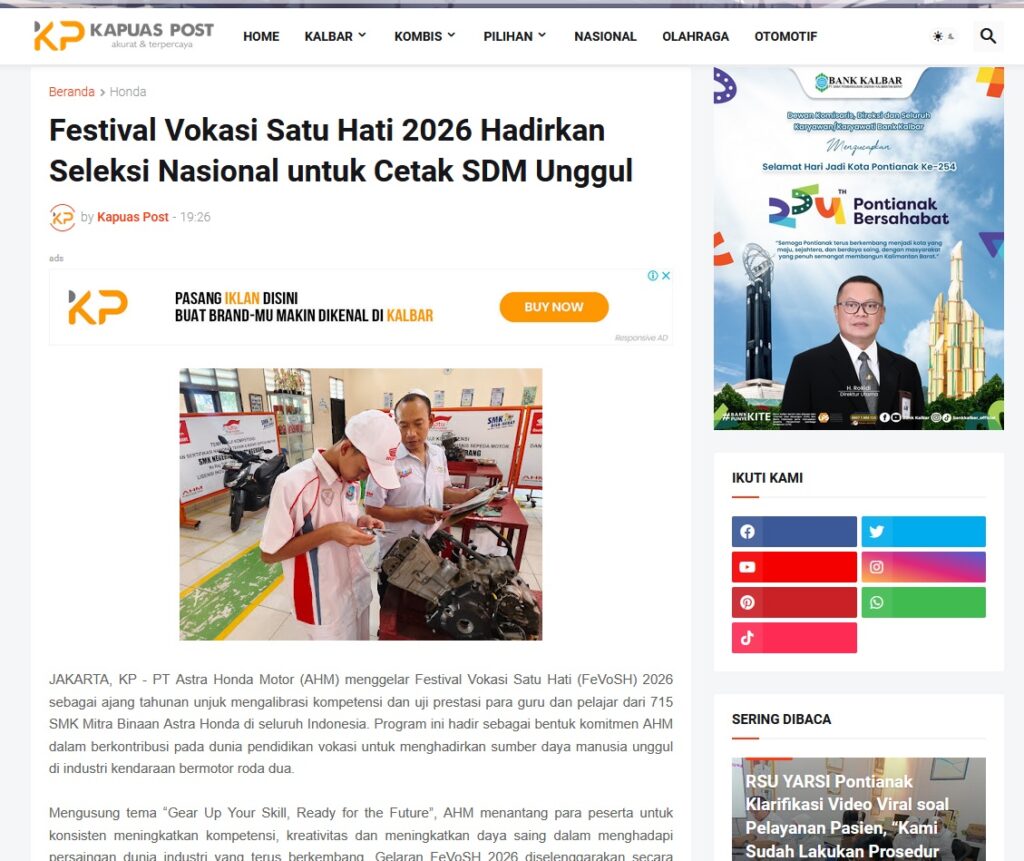 Festival Vokasi Satu Hati 2026 Hadirkan Seleksi Nasional untuk Cetak SDM Unggul by Muhammad Arif 12 November 2025 in Silahkan kunjungi https://www.kapuaspost.web.id/2025/11/festival-vokasi-satu-hati-2026-hadirkan.html. Tags: astra Astra Motor kalbar Astra Motor Pontianak astramotor honda kalbar pontianak sepeda motor You Might Like Regional Public Launching New ADV160 The SUV Pride Grand Launching New PCX 160 Truly Exceptional! Tetap hati-hati ya bro sist berkendara saat hujan.