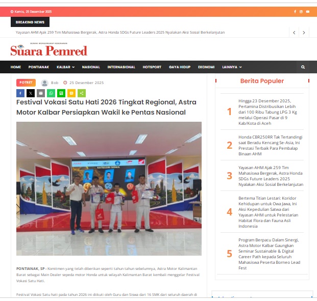 Festival Vokasi Satu Hati 2026 Tingkat Regional, Astra Motor Kalbar Persiapkan Wakil ke Pentas Nasional by masmul 25 Desember 2025 in Silahkan kunjungi https://www.suarapemredkalbar.com/read/potret/25122025/festival-vokasi-satu-hati-2026-tingkat-regional-astra-motor-kalbar-persiapkan-wakil-ke-pentas-nasional. You Might Like Regional Public Launching New ADV160 The SUV Pride Grand Launching New PCX 160 Truly Exceptional! Tetap hati-hati ya bro sist berkendara saat hujan.