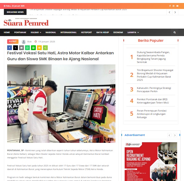Festival Vokasi Satu Hati, Astra Motor Kalbar Antarkan Guru dan Siswa SMK Binaan ke Ajang Nasional by masmul 19 Januari 2025 in Silahkan kunjungi https://www.suarapemredkalbar.com/read/potret/19012025/festival-vokasi-satu-hati-astra-motor-kalbar-antarkan-guru-dan-siswa-smk-binaan-ke-ajang-nasional. You Might Like Regional Public Launching New ADV160 The SUV Pride Grand Launching New PCX 160 Truly Exceptional! Tetap hati-hati ya bro sist berkendara saat hujan.