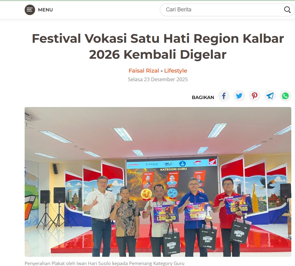 Festival Vokasi Satu Hati Region Kalbar 2026 Kembali Digelar by Dodi Dodi 23 Desember 2025 in Silahkan kunjungi https://harianberkat.com/2025/12/23/festival-vokasi-satu-hati-region-kalbar-2026-kembali-digelar/. You Might Like Regional Public Launching New ADV160 The SUV Pride Grand Launching New PCX 160 Truly Exceptional! Tetap hati-hati ya bro sist berkendara saat hujan.