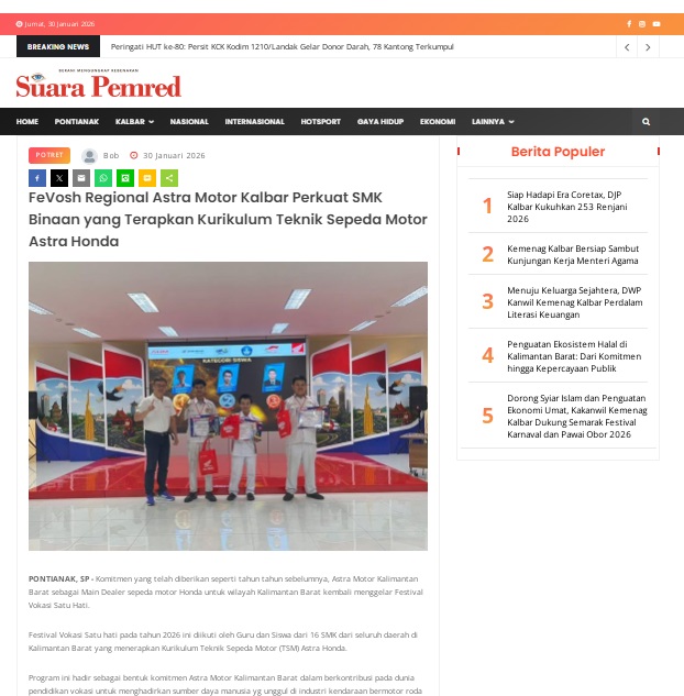 FeVosh Regional Astra Motor Kalbar Perkuat SMK Binaan yang Terapkan Kurikulum Teknik Sepeda Motor Astra Honda by masmul 30 Januari 2026 in Silahkan kunjungi https://www.suarapemredkalbar.com/read/potret/30012026/fevosh-regional-astra-motor-kalbar-perkuat-smk-binaan-yang-terapkan-kurikulum-teknik-sepeda-motor-astra-honda. You Might Like Regional Public Launching New ADV160 The SUV Pride Grand Launching New PCX 160 Truly Exceptional! Tetap hati-hati ya bro sist berkendara saat hujan.