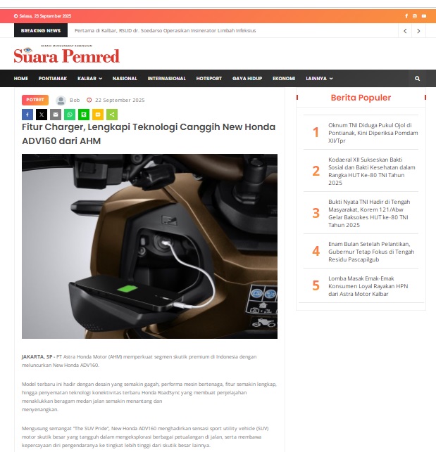 Fitur Charger, Lengkapi Teknologi Canggih New Honda ADV160 dari AHM by masmul 22 September 2025 in Silahkan kunjungi https://www.suarapemredkalbar.com/read/potret/22092025/fitur-charger-lengkapi-teknologi-canggih-new-honda-adv160-dari-ahm. You Might Like Regional Public Launching New ADV160 The SUV Pride Grand Launching New PCX 160 Truly Exceptional! Tetap hati-hati ya bro sist berkendara saat hujan.
