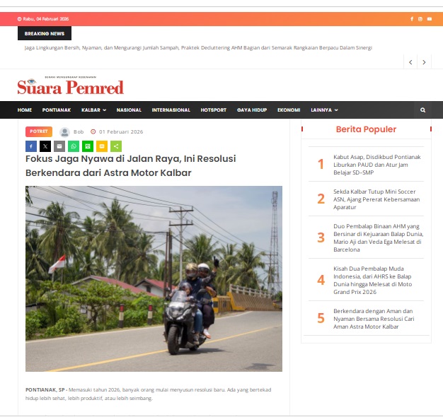 Fokus Jaga Nyawa di Jalan Raya, Ini Resolusi Berkendara dari Astra Motor Kalbar by masmul 1 Februari 2026 in Silahkan kunjungi https://www.suarapemredkalbar.com/read/potret/01022026/fokus-jaga-nyawa-di-jalan-raya-ini-resolusi-berkendara-dari-astra-motor-kalbar. You Might Like Regional Public Launching New ADV160 The SUV Pride Grand Launching New PCX 160 Truly Exceptional! Tetap hati-hati ya bro sist berkendara saat hujan.