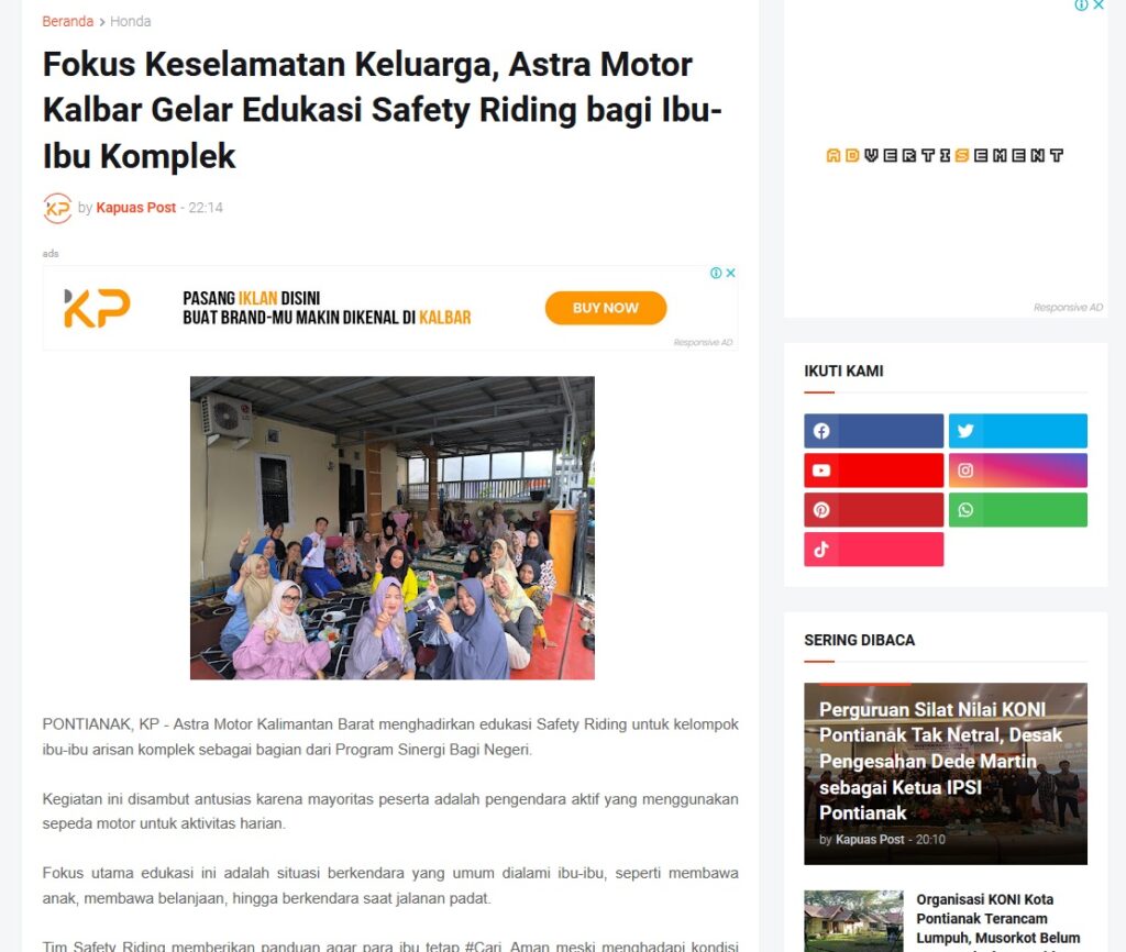 Fokus Keselamatan Keluarga, Astra Motor Kalbar Gelar Edukasi Safety Riding bagi Ibu-Ibu Komplek by Muhammad Arif 17 Desember 2025 in Silahkan kunjungi https://www.kapuaspost.web.id/2025/12/fokus-keselamatan-keluarga-astra-motor.html. Tags: astra Astra Motor kalbar Astra Motor Pontianak astramotor honda kalbar pontianak sepeda motor You Might Like Regional Public Launching New ADV160 The SUV Pride Grand Launching New PCX 160 Truly Exceptional! Tetap hati-hati ya bro sist berkendara saat hujan.
