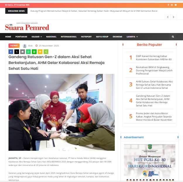 Gandeng Ratusan Gen-Z dalam Aksi Sehat Berkelanjutan, AHM Gelar Kolaborasi Aksi Remaja Sehat Satu Hati by masmul 25 November 2025 in Silahkan kunjungi https://www.suarapemredkalbar.com/read/potret/25112025/gandeng-ratusan-gen-z-dalam-aksi-sehat-berkelanjutan-ahm-gelar-kolaborasi-aksi-remaja-sehat-satu-hati. You Might Like Regional Public Launching New ADV160 The SUV Pride Grand Launching New PCX 160 Truly Exceptional! Tetap hati-hati ya bro sist berkendara saat hujan.