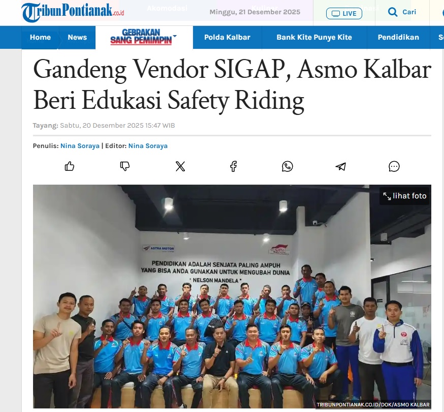 Gandeng Vendor SIGAP, Asmo Kalbar Beri Edukasi Safety Riding by Nina Soraya 20 Desember 2025 in Silahkan kunjungi https://pontianak.tribunnews.com/metropolis/1155078/gandeng-vendor-sigap-asmo-kalbar-beri-edukasi-safety-riding. You Might Like Regional Public Launching New ADV160 The SUV Pride Grand Launching New PCX 160 Truly Exceptional! Tetap hati-hati ya bro sist berkendara saat hujan.