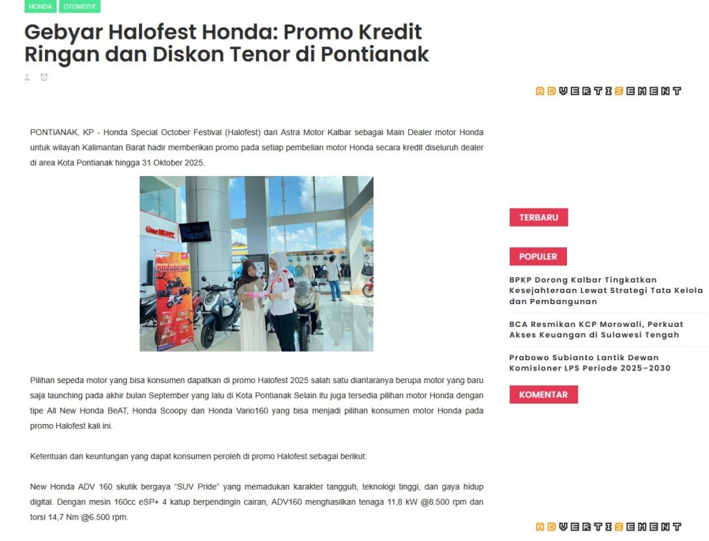 Gebyar Halofest Honda: Promo Kredit Ringan dan Diskon Tenor di Pontianak by Muhammad Arif 11 Oktober 2025 in Silahkan kunjungi https://www.kapuaspost.web.id/2025/10/gebyar-halofest-honda-promo-kredit.html. Tags: astra Astra Motor kalbar Astra Motor Pontianak astramotor honda kalbar pontianak sepeda motor You Might Like Regional Public Launching New ADV160 The SUV Pride Grand Launching New PCX 160 Truly Exceptional! Tetap hati-hati ya bro sist berkendara saat hujan.