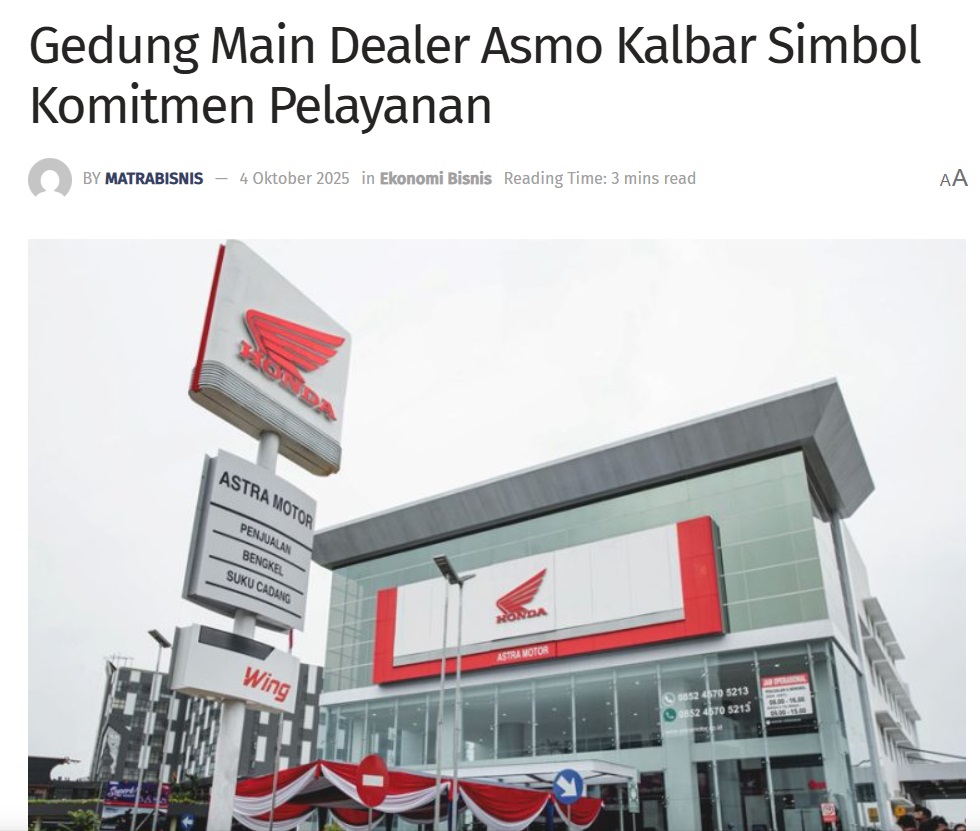 Gedung Main Dealer Asmo Kalbar Simbol Komitmen Pelayanan by Sri Yuliantiningsih 4 Oktober 2025 in Silahkan kunjungi https://matrabisnis.id/2025/10/04/gedung-main-dealer-asmo-kalbar-simbol-komitmen-pelayanan/. You Might Like Regional Public Launching New ADV160 The SUV Pride Grand Launching New PCX 160 Truly Exceptional! Tetap hati-hati ya bro sist berkendara saat hujan.
