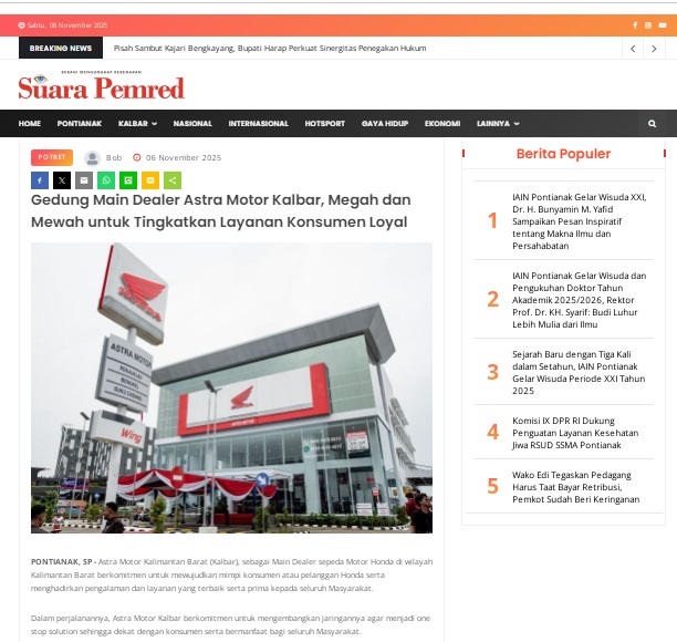 Gedung Main Dealer Astra Motor Kalbar, Megah dan Mewah untuk Tingkatkan Layanan Konsumen Loyal by masmul 6 November 2025 in Silahkan kunjungi https://www.suarapemredkalbar.com/read/potret/06112025/gedung-main-dealer-astra-motor-kalbar-megah-dan-mewah-untuk-tingkatkan-layanan-konsumen-loyal. You Might Like Regional Public Launching New ADV160 The SUV Pride Grand Launching New PCX 160 Truly Exceptional! Tetap hati-hati ya bro sist berkendara saat hujan.