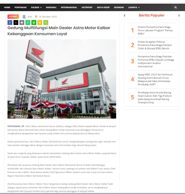 Gedung Mulftifungsi Main Dealer Astra Motor Kalbar Kebanggaan Konsumen Loyal by masmul 18 Oktober 2025 in Silahkan kunjungi https://www.suarapemredkalbar.com/read/potret/18102025/gedung-mulftifungsi-main-dealer-astra-motor-kalbar-kebanggaan-konsumen-loyal. You Might Like Regional Public Launching New ADV160 The SUV Pride Grand Launching New PCX 160 Truly Exceptional! Tetap hati-hati ya bro sist berkendara saat hujan.
