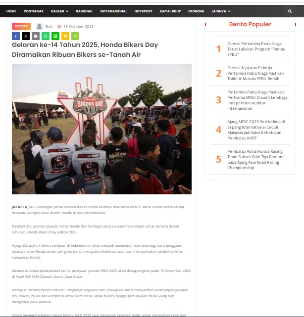 Gelaran ke-14 Tahun 2025, Honda Bikers Day Diramaikan Ribuan Bikers se-Tanah Air by masmul 18 Oktober 2025 in Silahkan kunjungi https://www.suarapemredkalbar.com/read/potret/18102025/gelaran-ke-14-tahun-2025-honda-bikers-day-diramaikan-ribuan-bikers-se-tanah-air. You Might Like Regional Public Launching New ADV160 The SUV Pride Grand Launching New PCX 160 Truly Exceptional! Tetap hati-hati ya bro sist berkendara saat hujan.