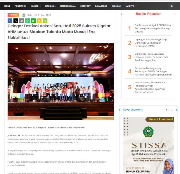 Gelegar Festival Vokasi Satu Hati 2025 Sukses Digelar AHM untuk Siapkan Talenta Muda Masuki Era Elektrifikasi by masmul 31 Mei 2025 in Silahkan kunjungi https://www.suarapemredkalbar.com/read/potret/31052025/gelegar-festival-vokasi-satu-hati-2025-sukses-digelar-ahm-untuk-siapkan-talenta-muda-masuki-era-elektrifikasi. You Might Like Regional Public Launching New ADV160 The SUV Pride Grand Launching New PCX 160 Truly Exceptional! Tetap hati-hati ya bro sist berkendara saat hujan.