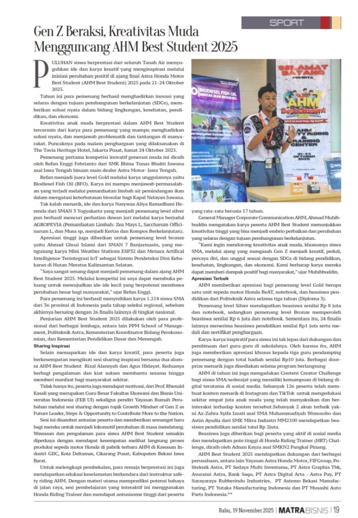 Gen Z Beraksi, Kreativitas Muda Mengguncang AHM Best Student 2025 by Sri Yuliantiningsih 19 November 2025 in Silahkan buka . You Might Like Regional Public Launching New ADV160 The SUV Pride Grand Launching New PCX 160 Truly Exceptional! Tetap hati-hati ya bro sist berkendara saat hujan.
