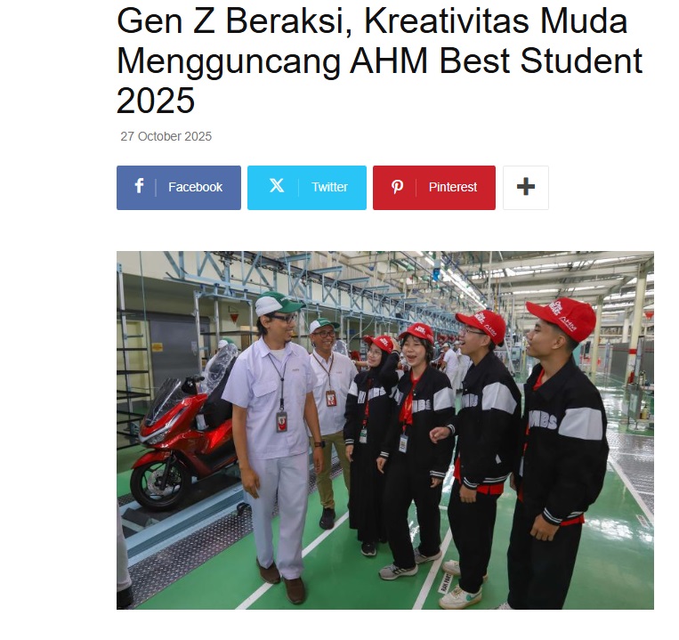 Gen Z Beraksi, Kreativitas Muda Mengguncang AHM Best Student 2025 by Nova Sari 27 Oktober 2025 in Silahkan kunjungi https://equator.co.id/gen-z-beraksi-kreativitas-muda-mengguncang-ahm-best-student-2025/. You Might Like Regional Public Launching New ADV160 The SUV Pride Grand Launching New PCX 160 Truly Exceptional! Tetap hati-hati ya bro sist berkendara saat hujan.