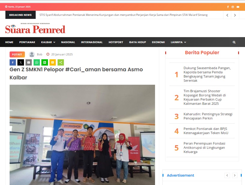 Gen Z SMKN1 Pelopor #Cari_aman bersama Asmo Kalbar by masmul 20 Januari 2025 in Silahkan kunjungi https://www.suarapemredkalbar.com/read/potret/20012025/gen-z-smkn1-pelopor-cari_aman-bersama-asmo-kalbar. You Might Like Regional Public Launching New ADV160 The SUV Pride Grand Launching New PCX 160 Truly Exceptional! Tetap hati-hati ya bro sist berkendara saat hujan.