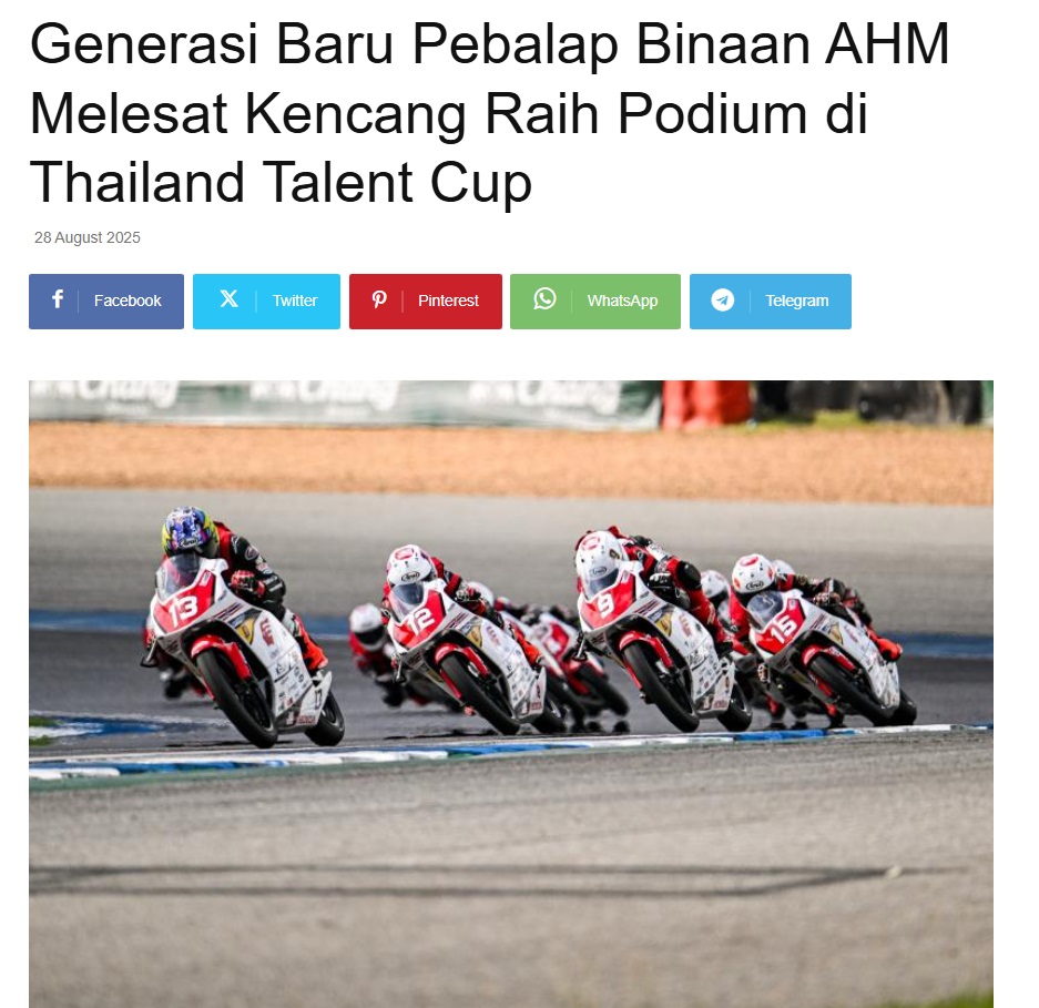 Generasi Baru Pebalap Binaan AHM Melesat Kencang Raih Podium di Thailand Talent Cup by Nova Sari 28 Agustus 2025 in Silahkan kunjungi https://equator.co.id/generasi-baru-pebalap-binaan-ahm-melesat-kencang-raih-podium-di-thailand-talent-cup/. You Might Like Regional Public Launching New ADV160 The SUV Pride Grand Launching New PCX 160 Truly Exceptional! Tetap hati-hati ya bro sist berkendara saat hujan.