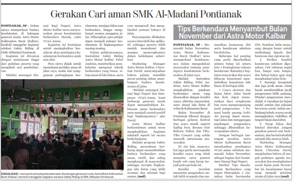 Gerakan Cari aman SMK Al-Madani Pontianak, Astra Motor Kalbar Gencarkan Safety Riding Education Kalangan Pelajar by masmul 1 November 2025 in Silahkan buka . You Might Like Regional Public Launching New ADV160 The SUV Pride Grand Launching New PCX 160 Truly Exceptional! Tetap hati-hati ya bro sist berkendara saat hujan.