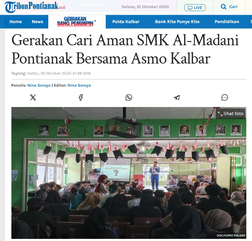Gerakan Cari Aman SMK Al-Madani Pontianak Bersama Asmo Kalbar by Ishak Ismail 18 Oktober 2025 in Silahkan kunjungi https://pontianak.tribunnews.com/metropolis/1146305/gerakan-cari-aman-smk-al-madani-pontianak-bersama-asmo-kalbar. You Might Like Regional Public Launching New ADV160 The SUV Pride Grand Launching New PCX 160 Truly Exceptional! Tetap hati-hati ya bro sist berkendara saat hujan.